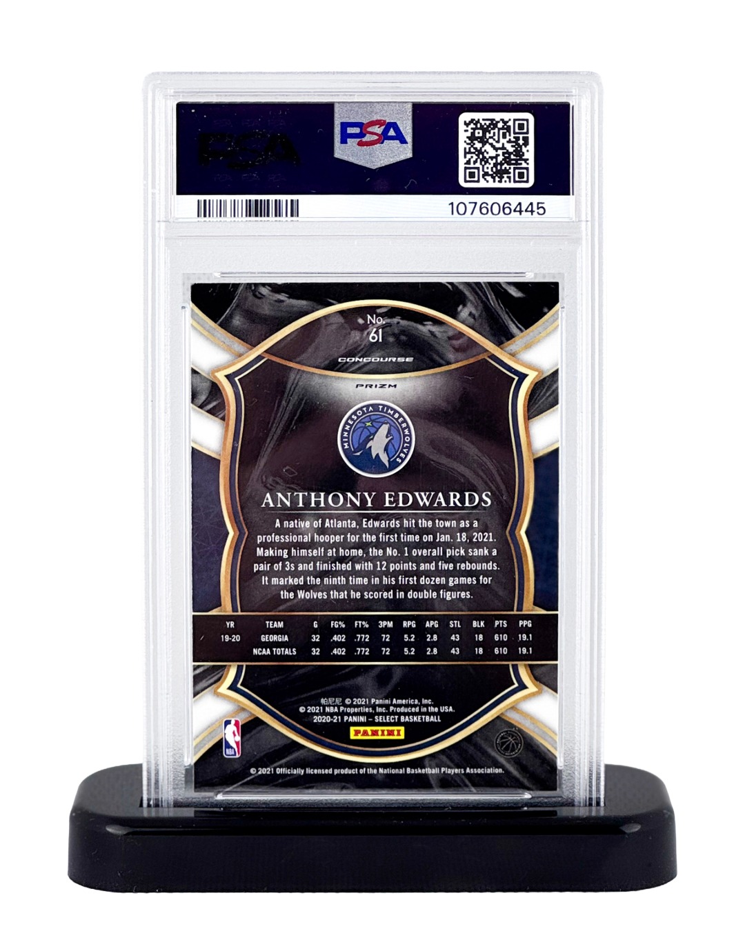 2020-21 Anthony Edwards Select Concourse Blue White Purple Cracked Ice RC #61 PSA 10